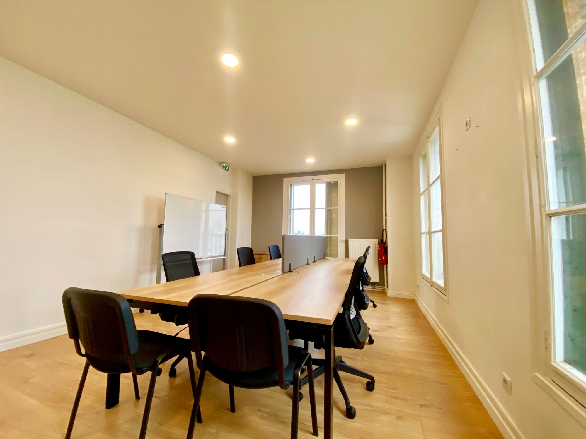 Bureaux lumineux et adaptés pour toutes entreprises. Celui-ci se compose de la manière suivante : Un bureau , une salle de réunion de 21 m2, un open space de 24m2, bel aménagement et agencement. Des sanitaires, une salle de douche, de repos avec cuisine équipée.