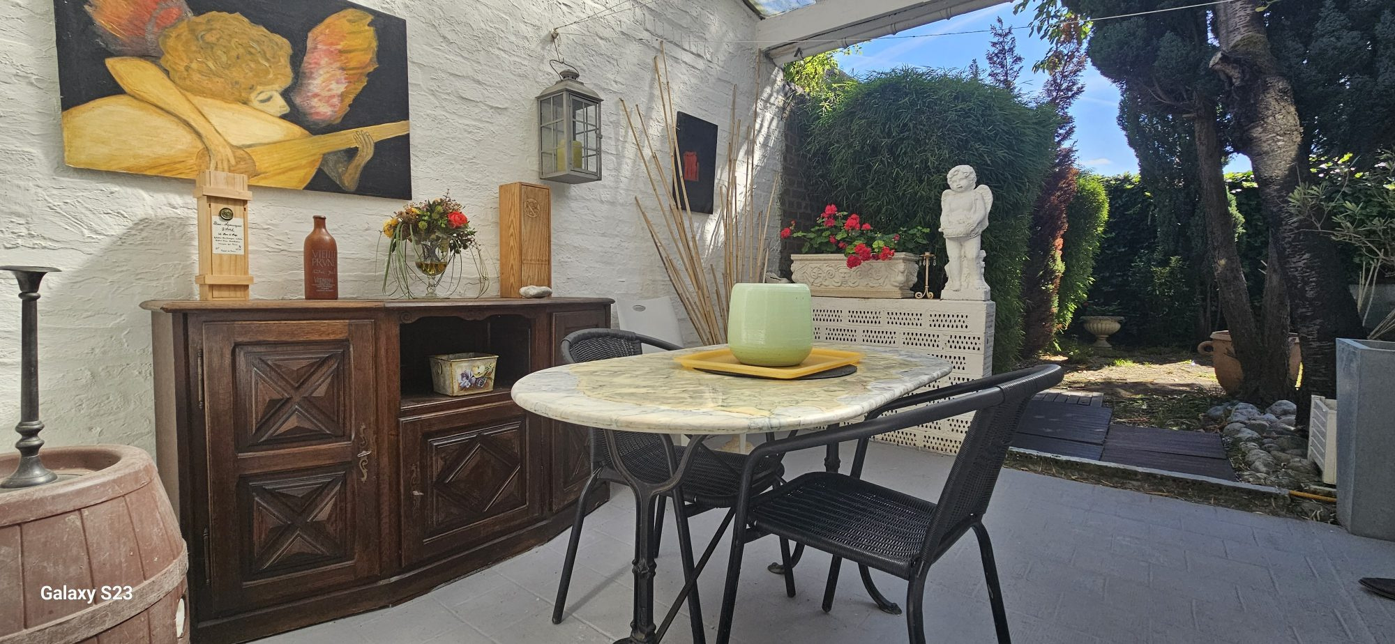A l'extérieur, outre la terrasse, vous apprécierez le jardinet arboré de 40m² environ sans aucun vis-à-vis ainsi qu'une pièce aménagée en buanderie.